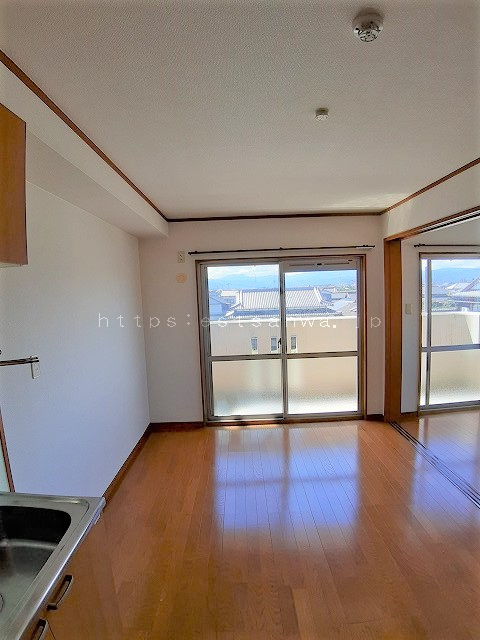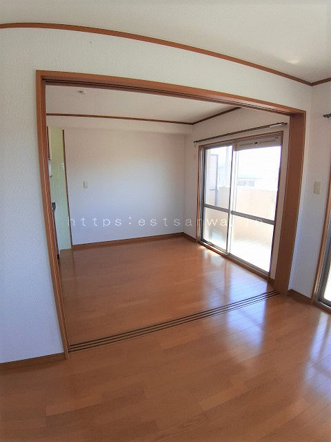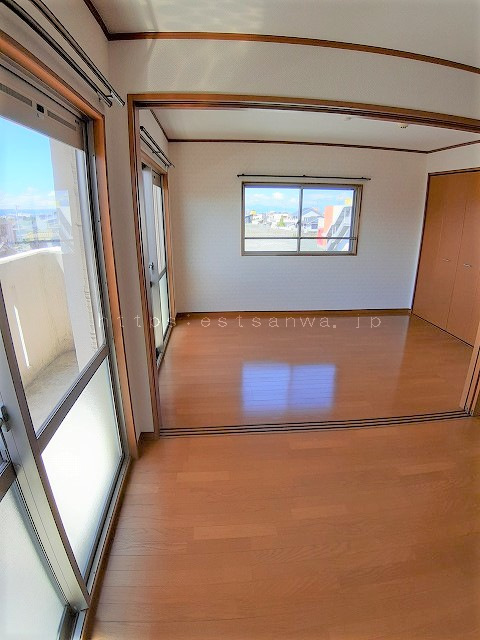 最上階・角部屋!! 豊前市の鉄筋コンクリートマンションです。2DKになりますが、DKと洋室の引き戸を全開してLDKとして使えます。