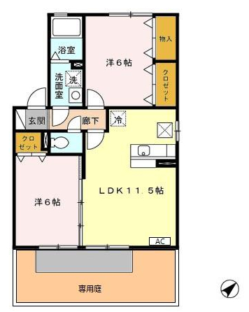 スーパー、小学校が徒歩圏内。6帖の洋室が2室。便利な追い焚きバス付き。