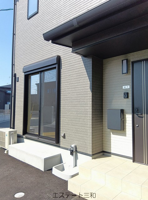 サンルーム付き☆オール電化☆新築テラスハウス☆外水栓とコンセント付き☆1階掃き出し窓にシャッター付!複層ガラス!ポーチライトはオートタイプ☆15帖の広々リビング!